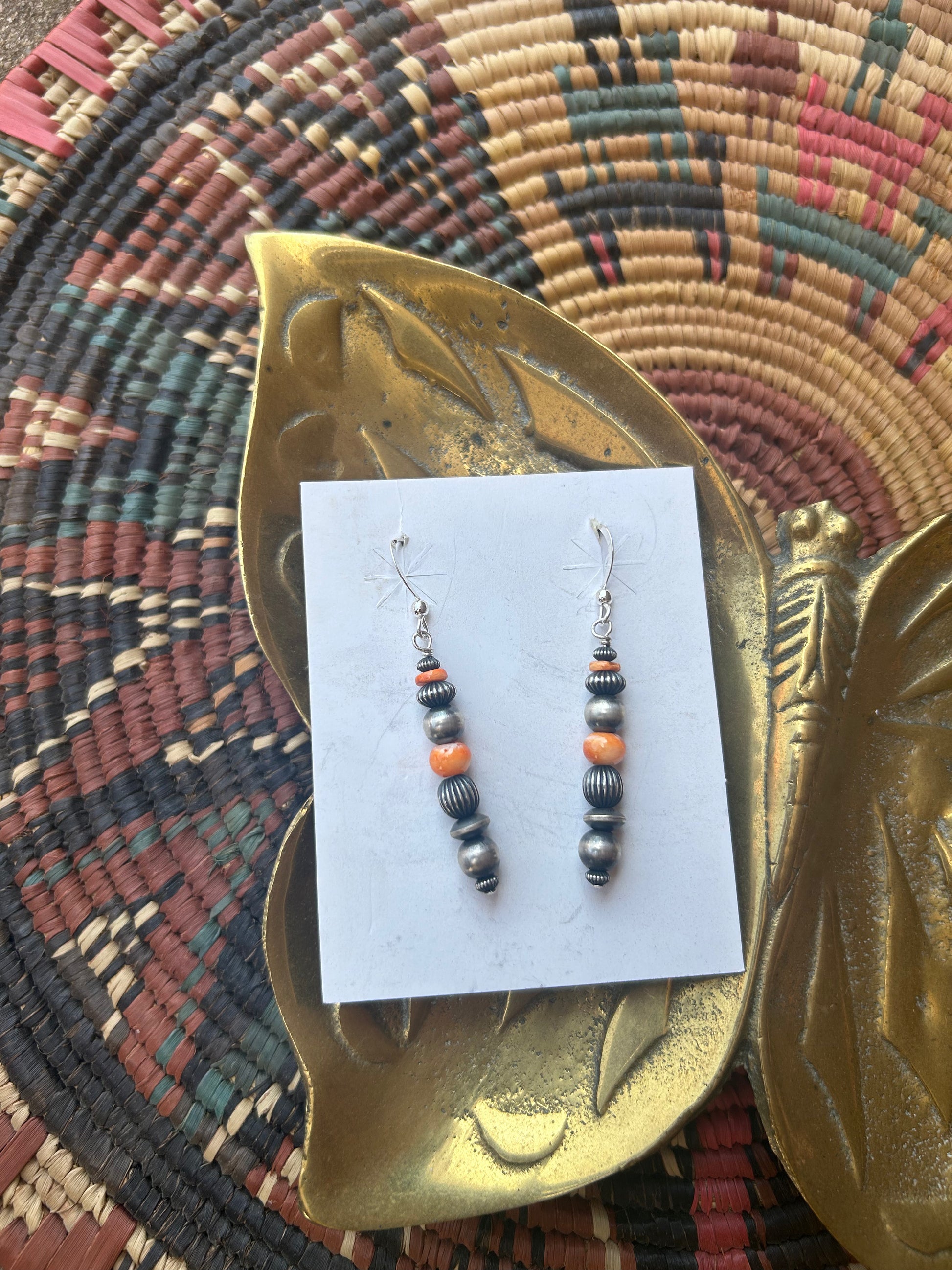 Orange spiny + sterling silver pearls